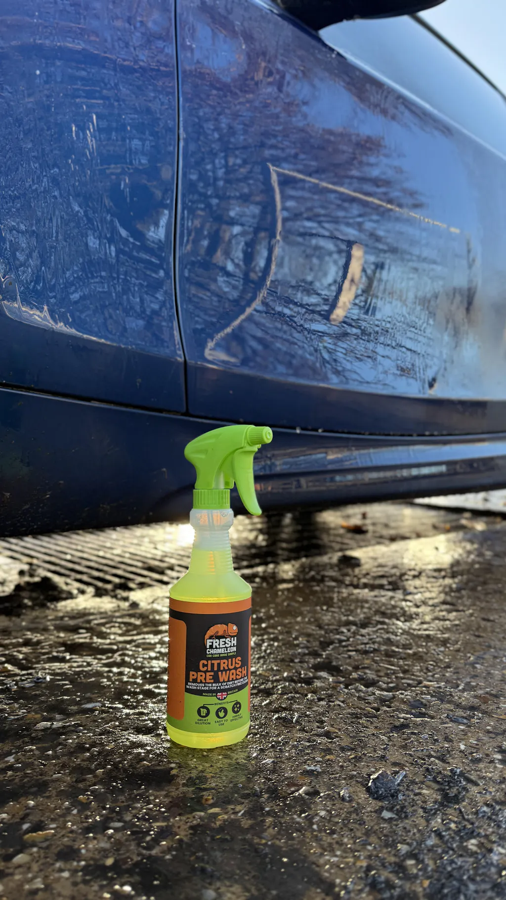 Citrus Pre Wash preps your vehicle for a safe and effective swirl & scratch free contact wash by removing surface dirt ready for our shampoo, ensuring a gleaming, spotless finish.